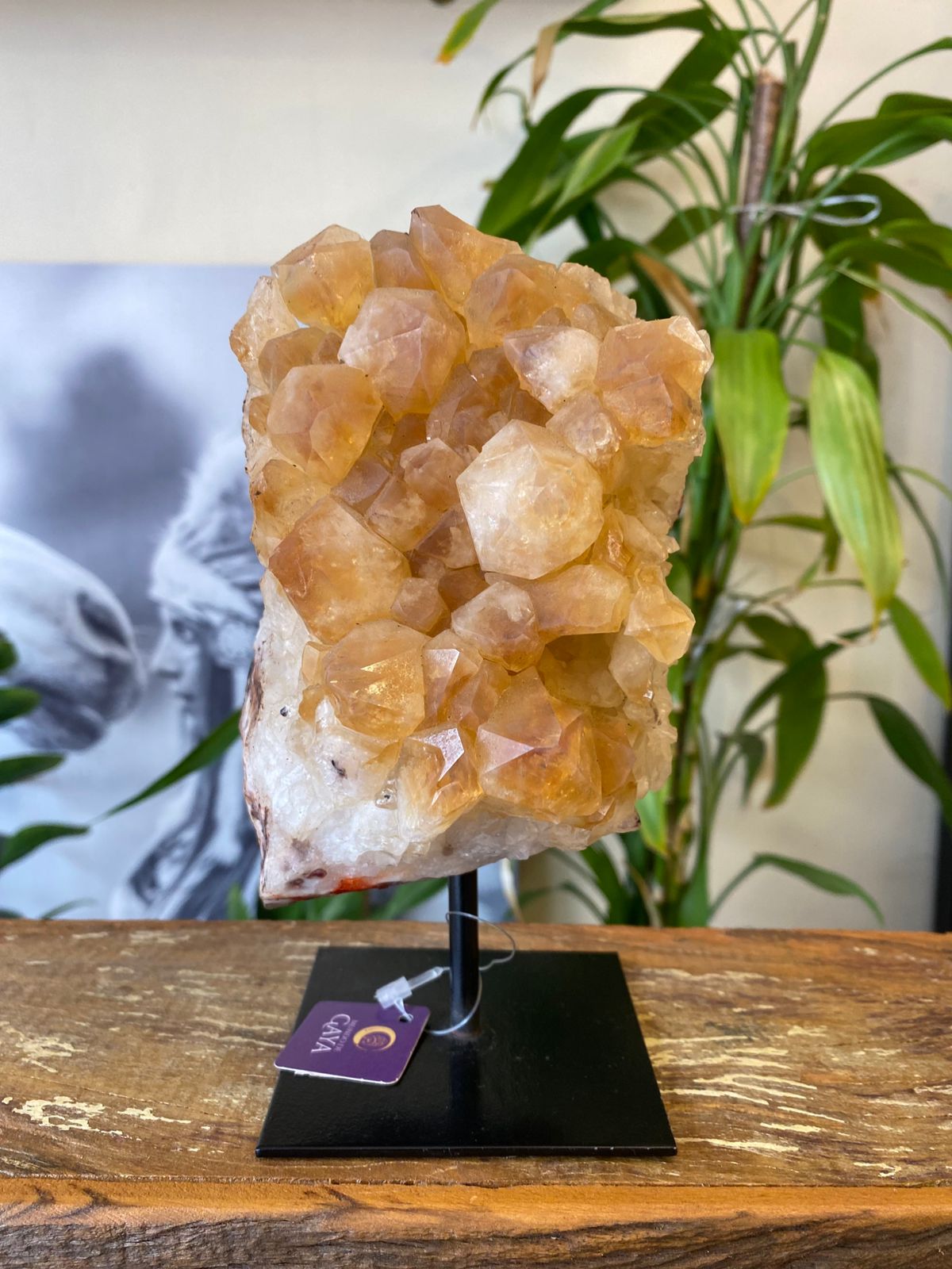 Essa peça única de citrino natural, em sua formação de drusa, é fixada em uma base de ferro que valoriza sua presença e garante estabilidade. Com cristais dourados translúcidos e bem definidos, essa pedra é conhecida por atrair prosperidade, estimular a criatividade e renovar as energias do ambiente.