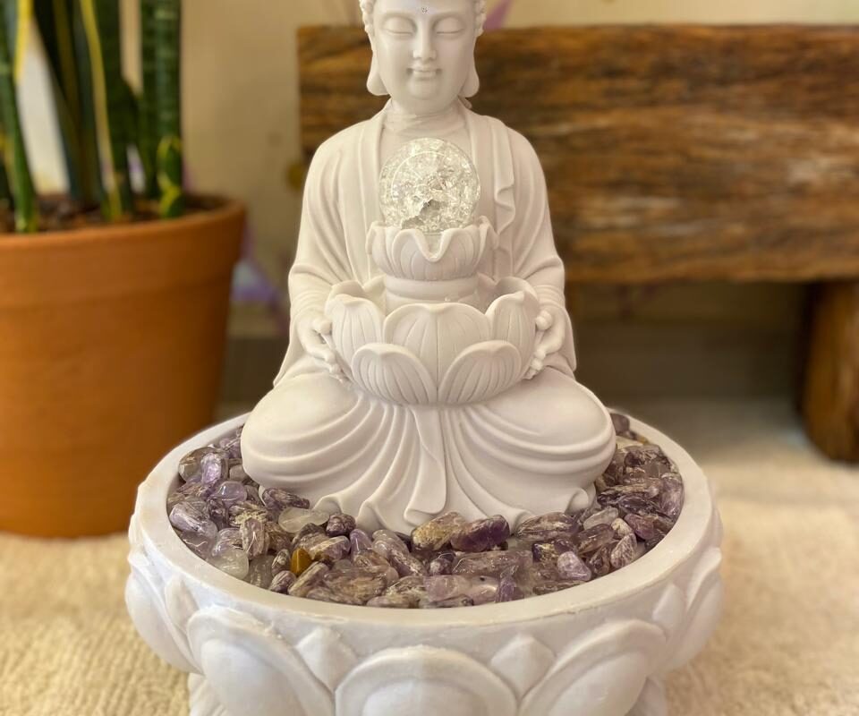 Fonte Buda com Pedras Naturais e Bola de Vidro – 42 cm