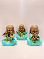 Esse encantador trio de budinhas representa a clássica sabedoria oriental: Não veja o mal, não ouça o mal, não fale o mal. Feitos em resina, com acabamento detalhado em tom verde com detalhes dourados, essas peças são perfeitas para harmonizar e proteger ambientes com um toque de delicadeza e espiritualidade.